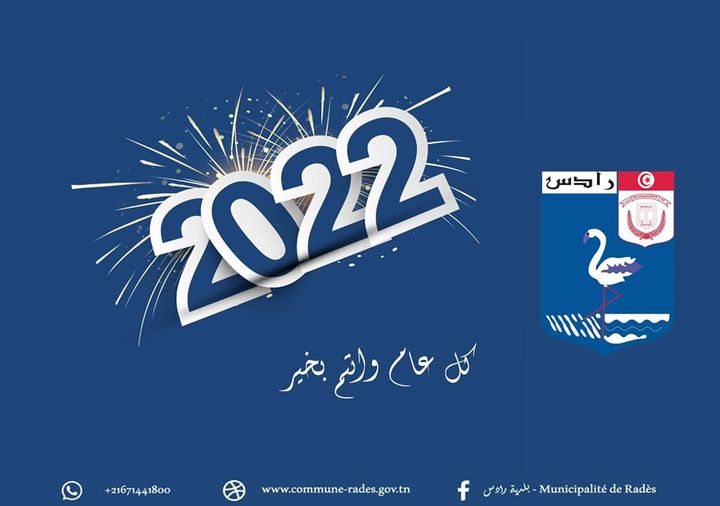 تتقدم بلدية رادس باحر التهاني لكافة الاعوان العاملين بالبلدية بمناسبة السنة الإدارية الجديدة 2022 كما تهنئ جميع الإطارات المحلية والجهوية والمركزية وكافة المتساكنين متمنين أن يعيدها الله علينا وعليكم جميعا بمزيد النجاج وموفور الصحة والعافية وأن يحفظ الله بلادنا من كل مكروه.